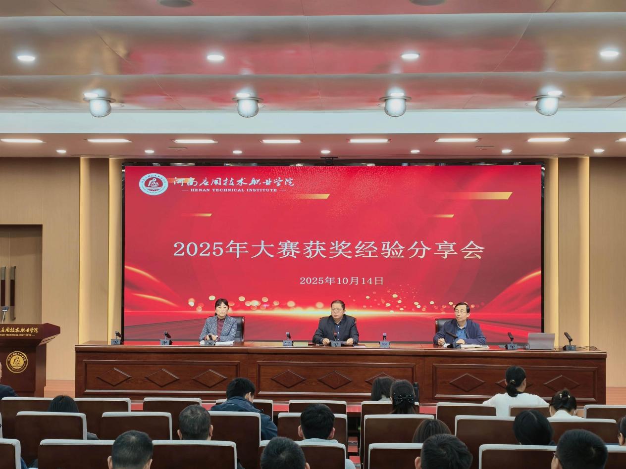 2025年10月14日下午,我校在郑州校区实训楼A一楼学术报告厅与开封校区B楼102学术报告厅同步举行“2025年大赛获奖经验总结分享会”。会议由教务处孙勇处长主持,各教学部门负责人、教研室主任、近两年新进教师、教学能力比赛培养团队成员及技能大赛辅导教师齐聚一堂,共话赛事心得,共绘育人新图。